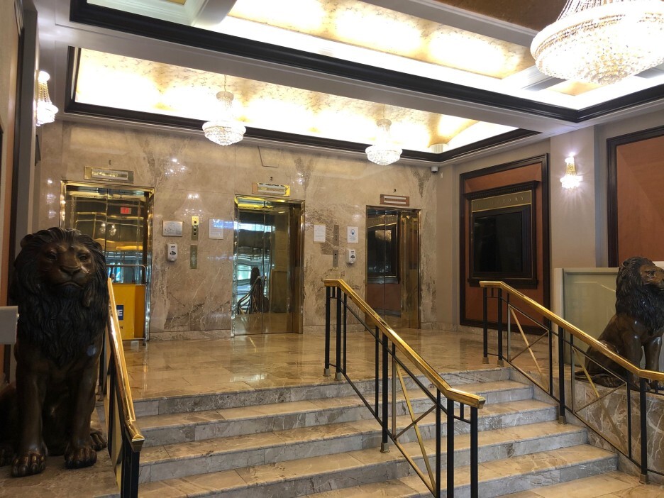 웅장한 사자상 두 마리가 계단을 지키고 있는데,