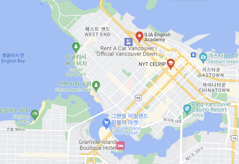 학생들이 많은 다운타운에는 두 개의 어학원에서 시험을 볼 수 있는데요.