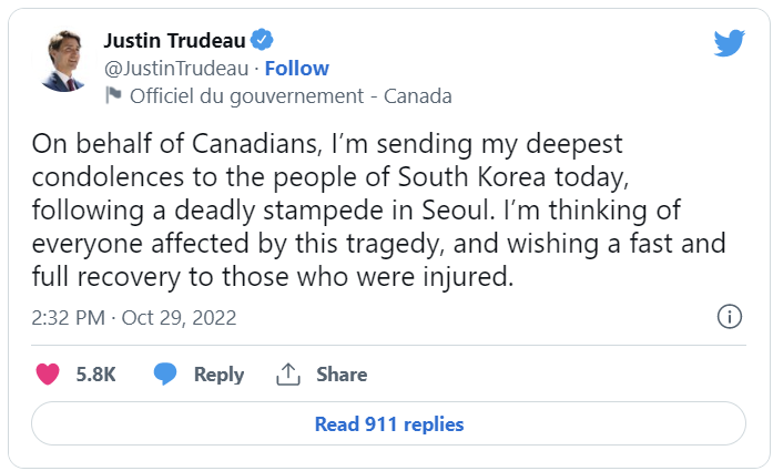 캐나다 트뤼도 총리의 트위터를 마지막으로