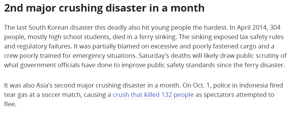 대서특필된 할로윈데이 이태원 압사 사건인데요.