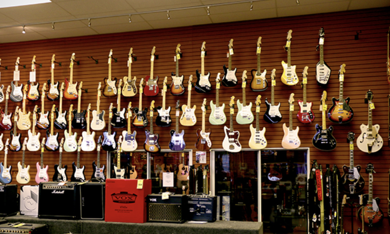 캐나다에서 보기 드문 커다란 악기 전문 매장을 구경 하는 것 만으로