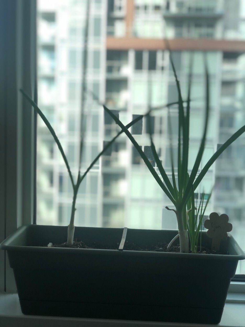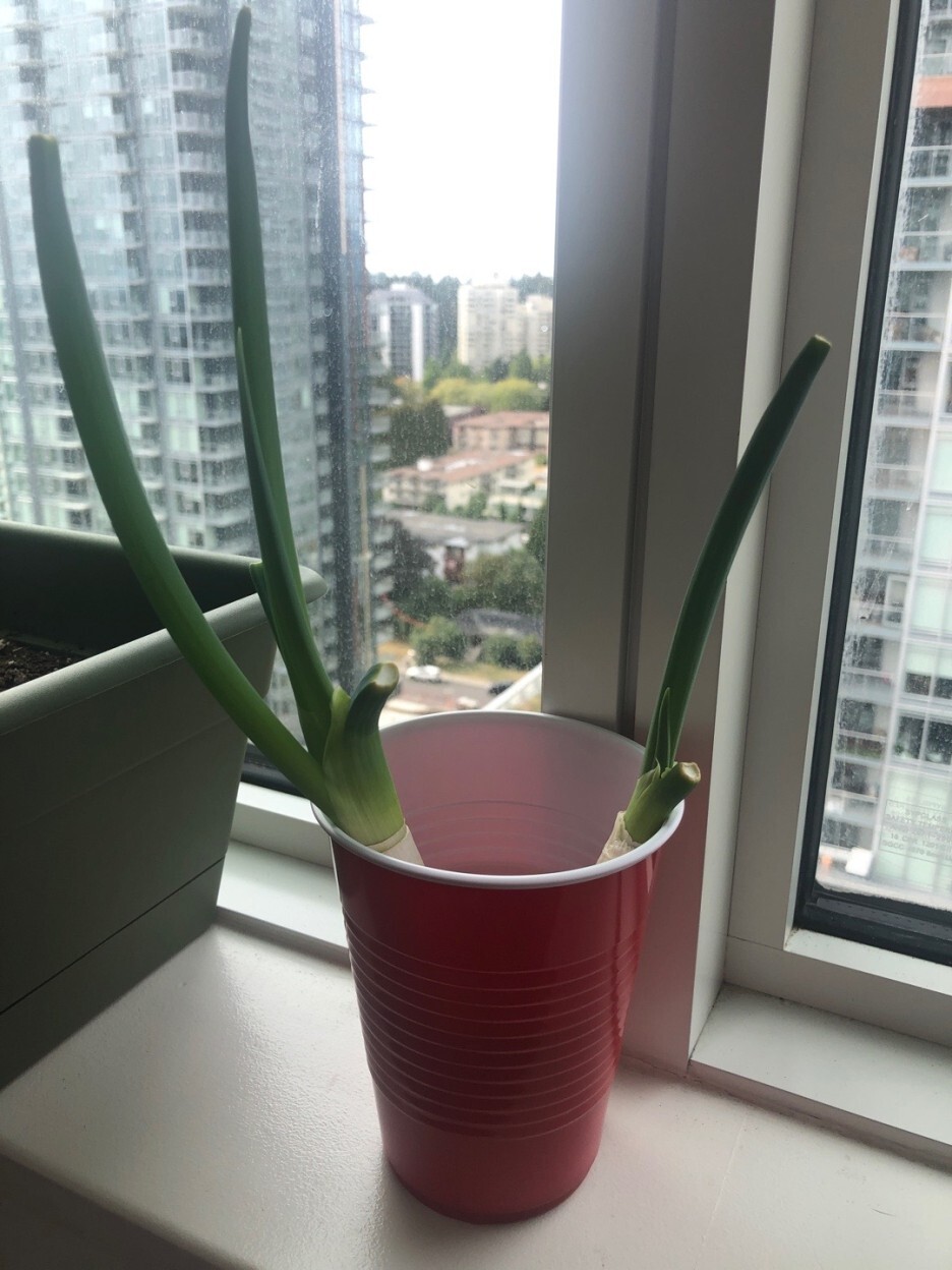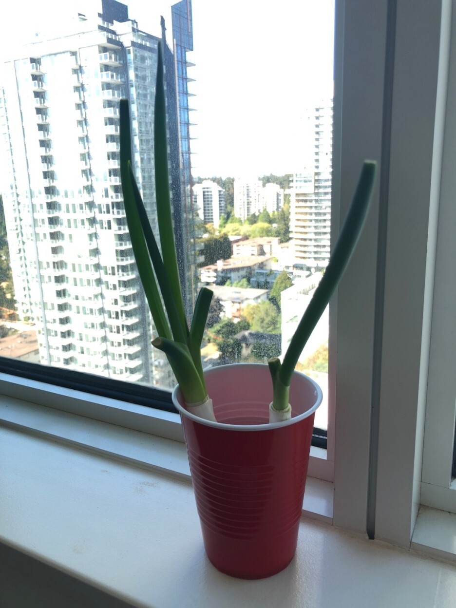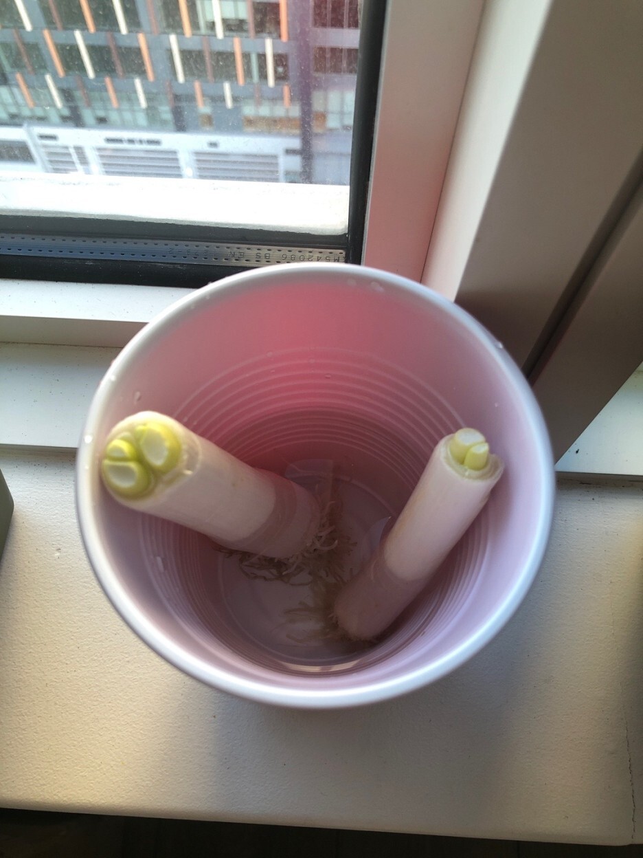 시장에서 파를 사다가 윗부분을 잘라서 요리에 쓰고 남은 밑둥을