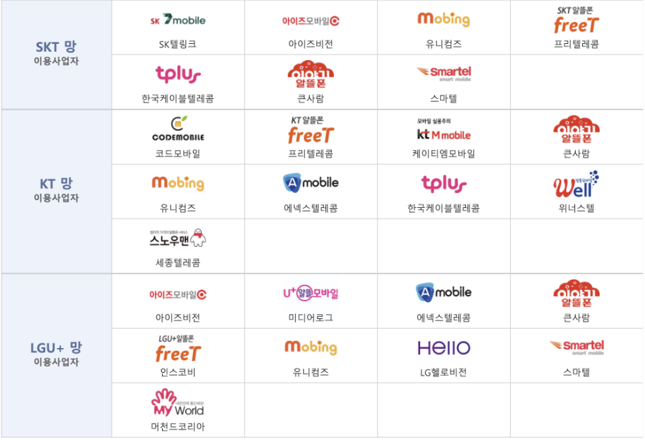 알뜰폰요금제로 많이들 알고 계시는 MVNO 사업자들도 있지요.