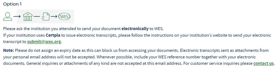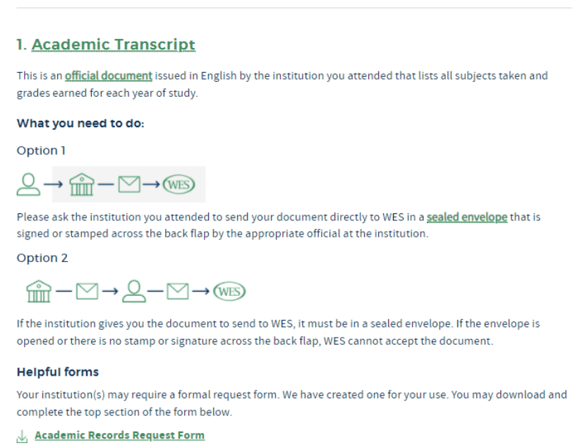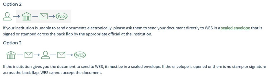 보통은 학교에서 직접 WES로 우편을 보내줘요. (Option2)