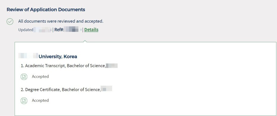 한국에서의 대학 졸업 인증을 받아