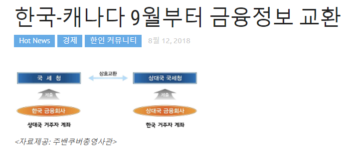 부동산 정보는 한국 - 캐나다 간 금융정보 교환 프로그램의 예외 대상이라고 하더라고요.