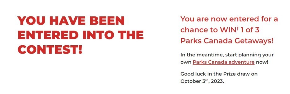 Enter for your chance to WIN† 1 of 3 Parks Canada Getaways!