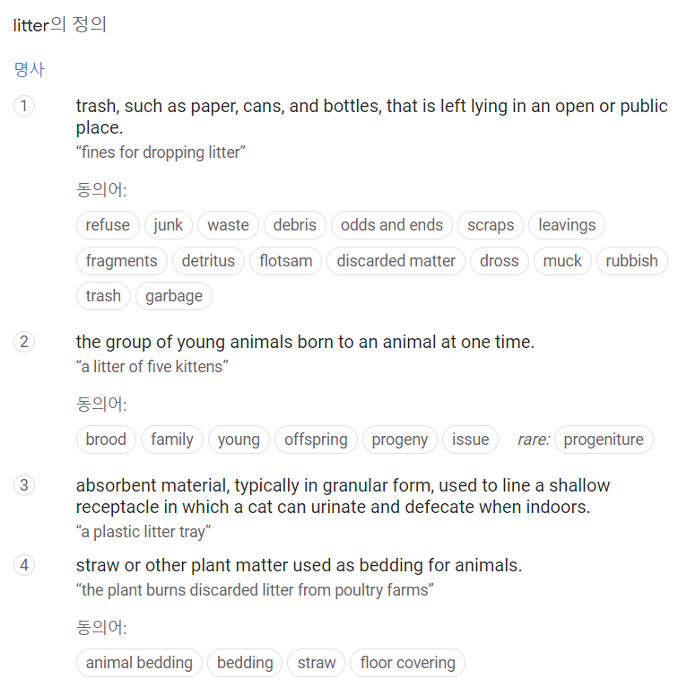 Litter를 집어올린다는게 무슨 뜻일까 당황스럽죠.ㅎ