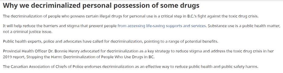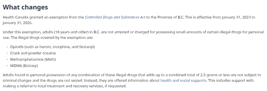 성인의 불법 약물 소량 소지에 대해 범죄시하지 않겠다는 내용이 보이네요.