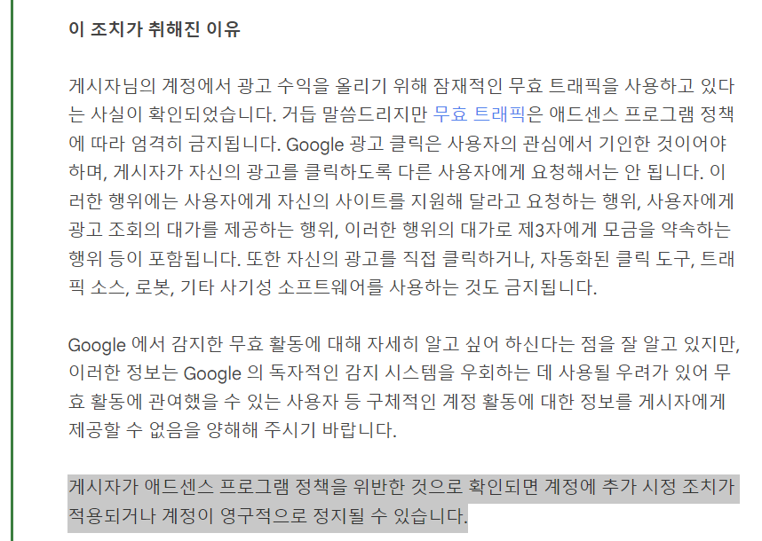 무효 트래픽이 감지 되었다는데 이게 도대체 뭔지 궁금해서 파란 글씨를 클릭해봤어요.