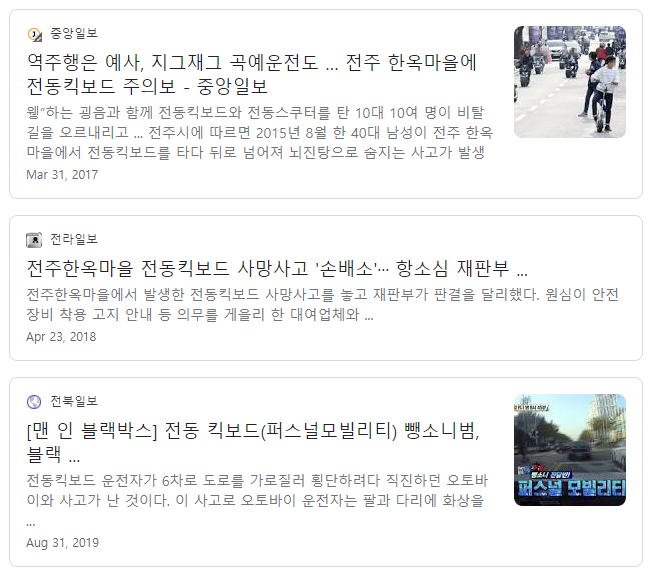 전동 스쿠터와 각종 전동 모빌리티 대여 서비스가 많이 생겼어요.