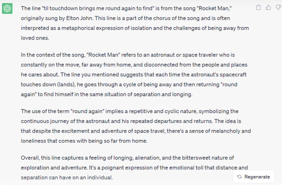 이건 사실 원곡 중 하나인 Rocket Man에서 따 온 부분으로,