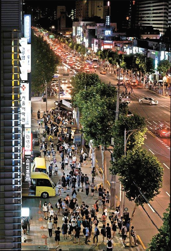밤늦게까지 영어 학원에 불을 밝히고 있네요.