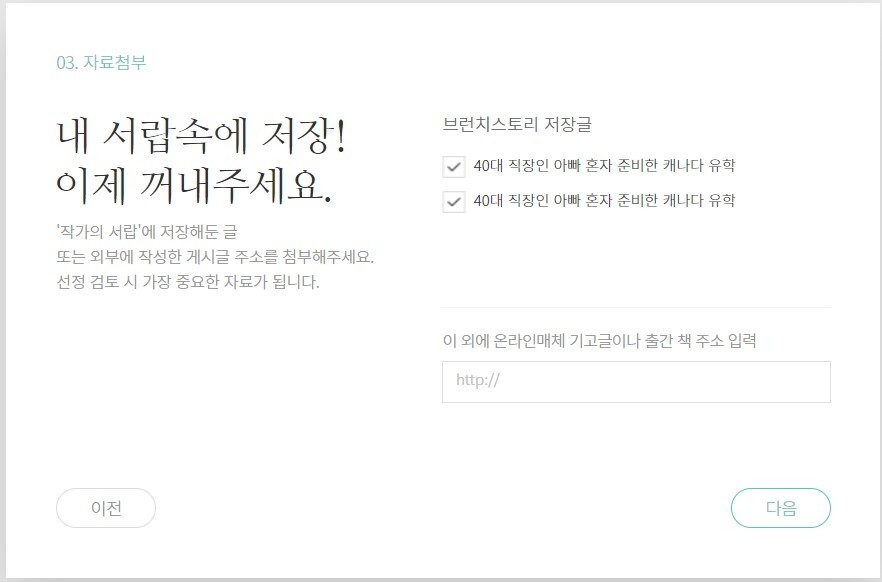 | 브런치북 출판 프로젝트 응모 (80) | 2023.10.12 |