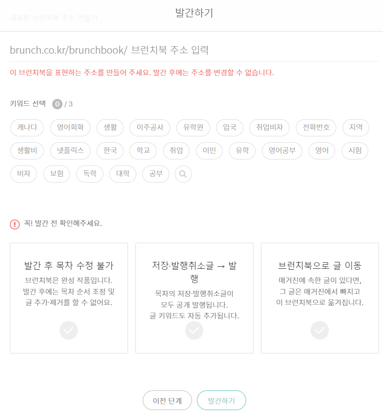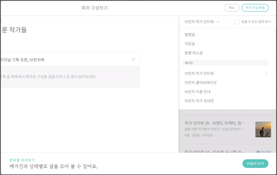 브런치북 구성만 해두고