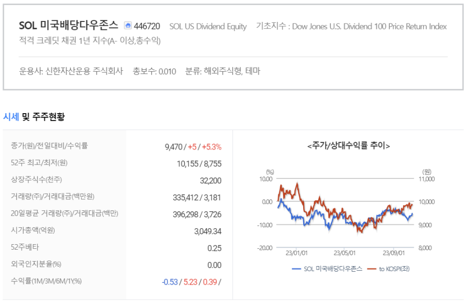 3가지 이름의 다우존스배당 ETF가 있는데요