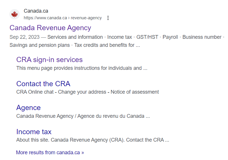 참고로 CRA와 같은 캐나다 주요 정부기관은
