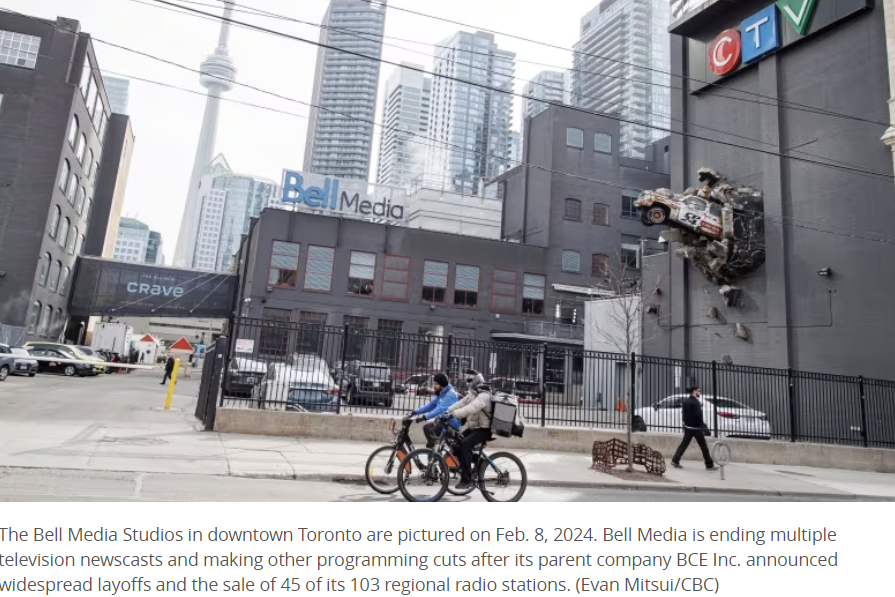 The company announced Thursday in an open letter signed by chief executive Mirko Bibic that 4,800 jobs "at all levels of the company" would be cut. Fewer than 10 per cent of the total job cuts are at Bell Media specifically.
