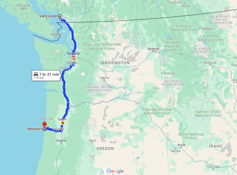 오늘은 밴쿠버에서 남쪽으로 차를 700Km