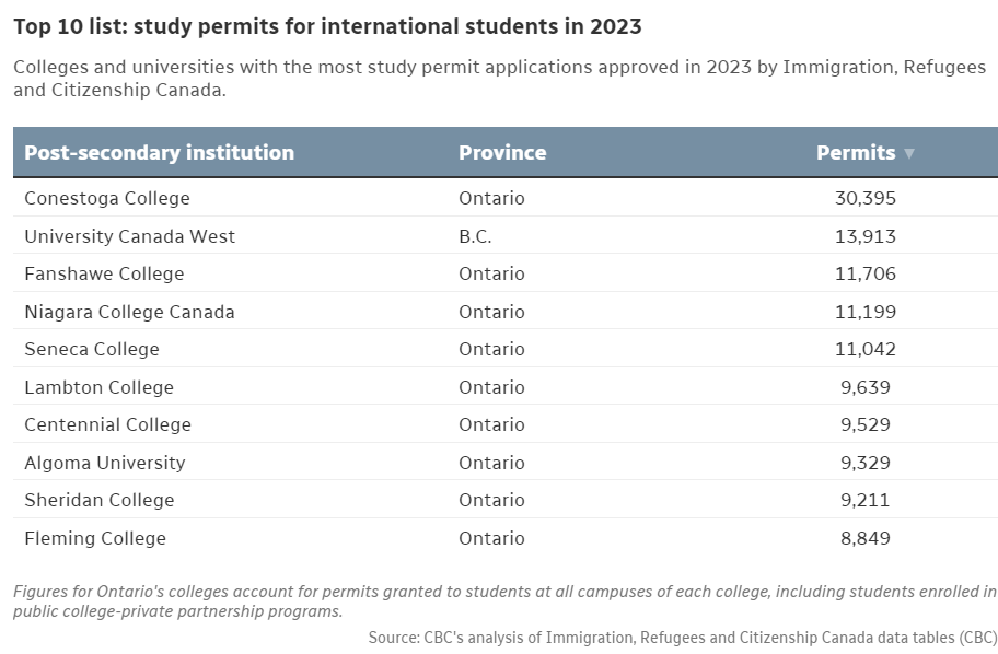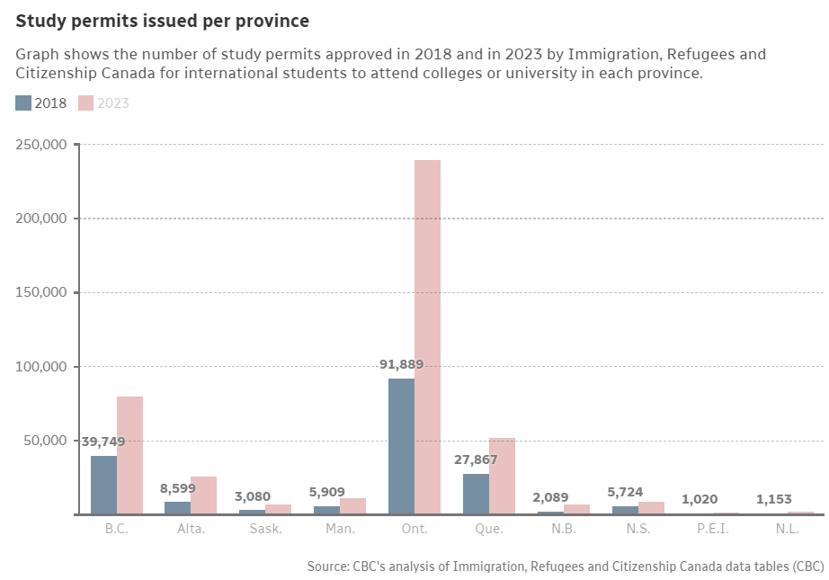 위의 표는 2023년 학생 비자 발급