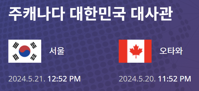 캐나다에는 대한민국의 대사관과 영사관이