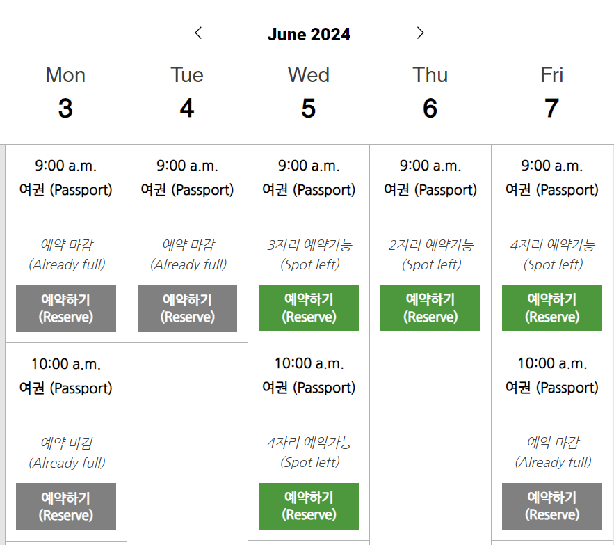 한달전부터 사이트에서 예약 가능하니