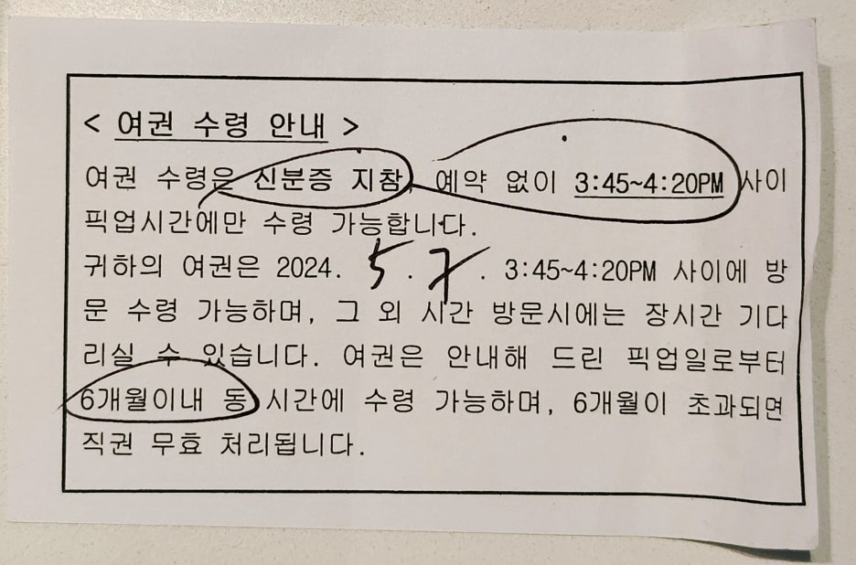 여권 수령 안내표를 나눠주는데요.