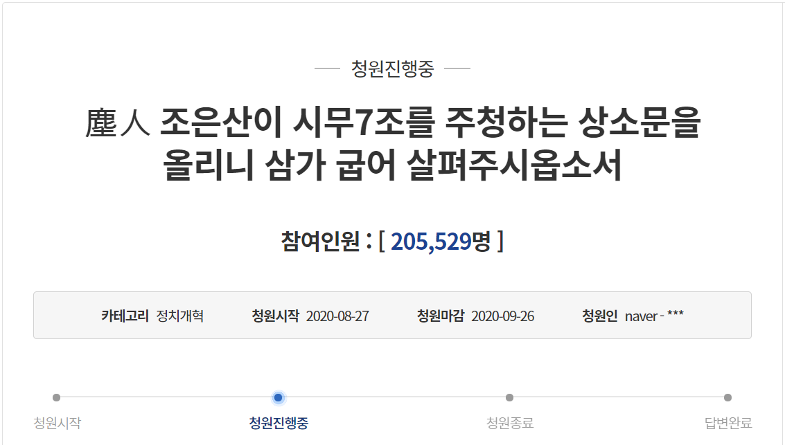 현재는 20만 명이 넘게 국민청원이 이뤄졌고