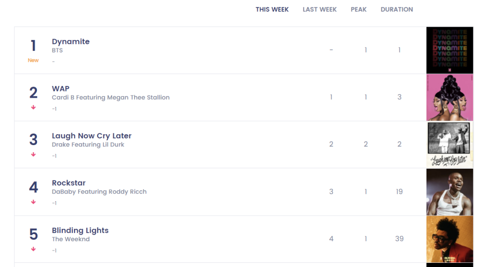 다양한 종류의 순위 차트가 존재하죠.